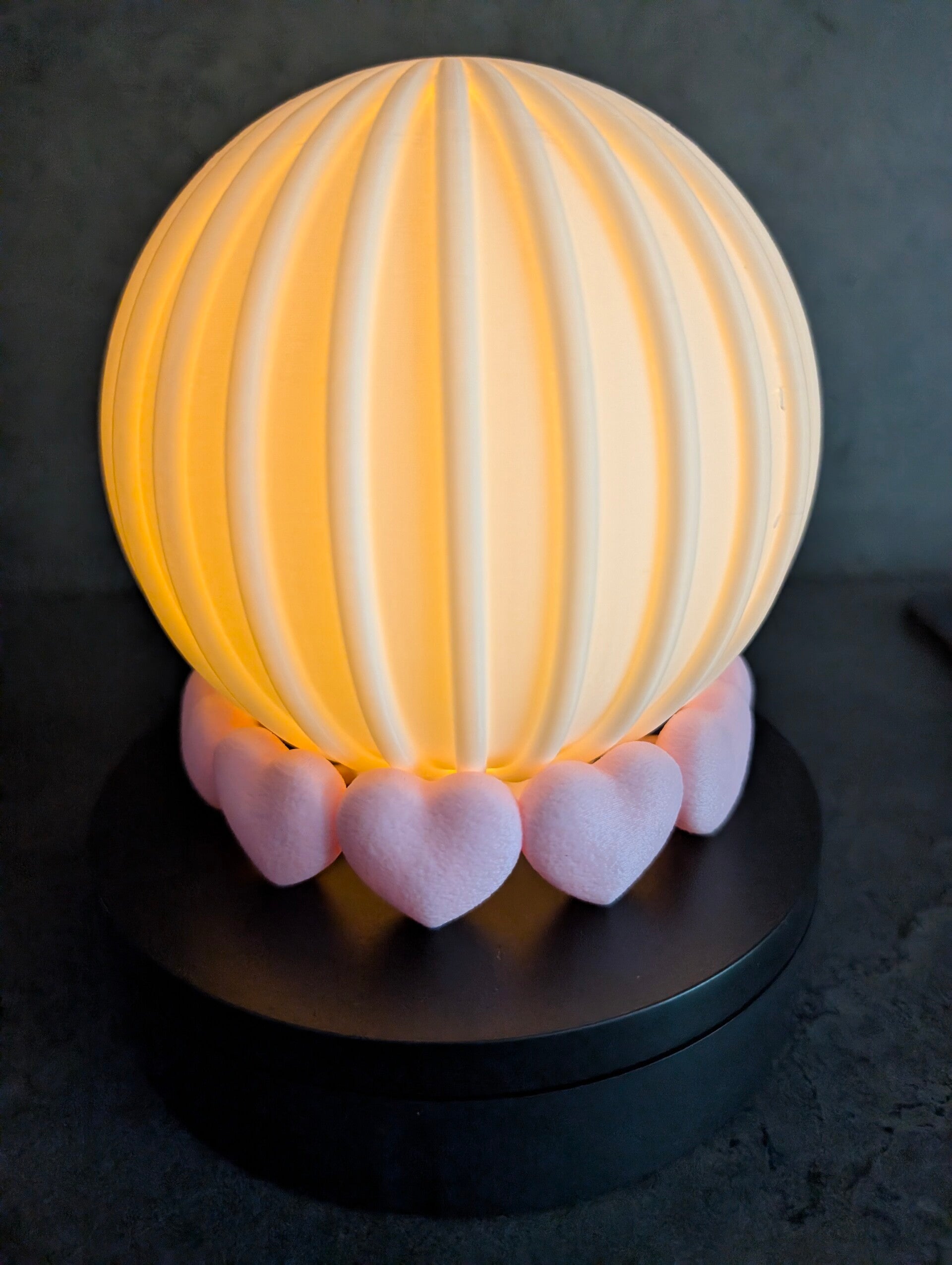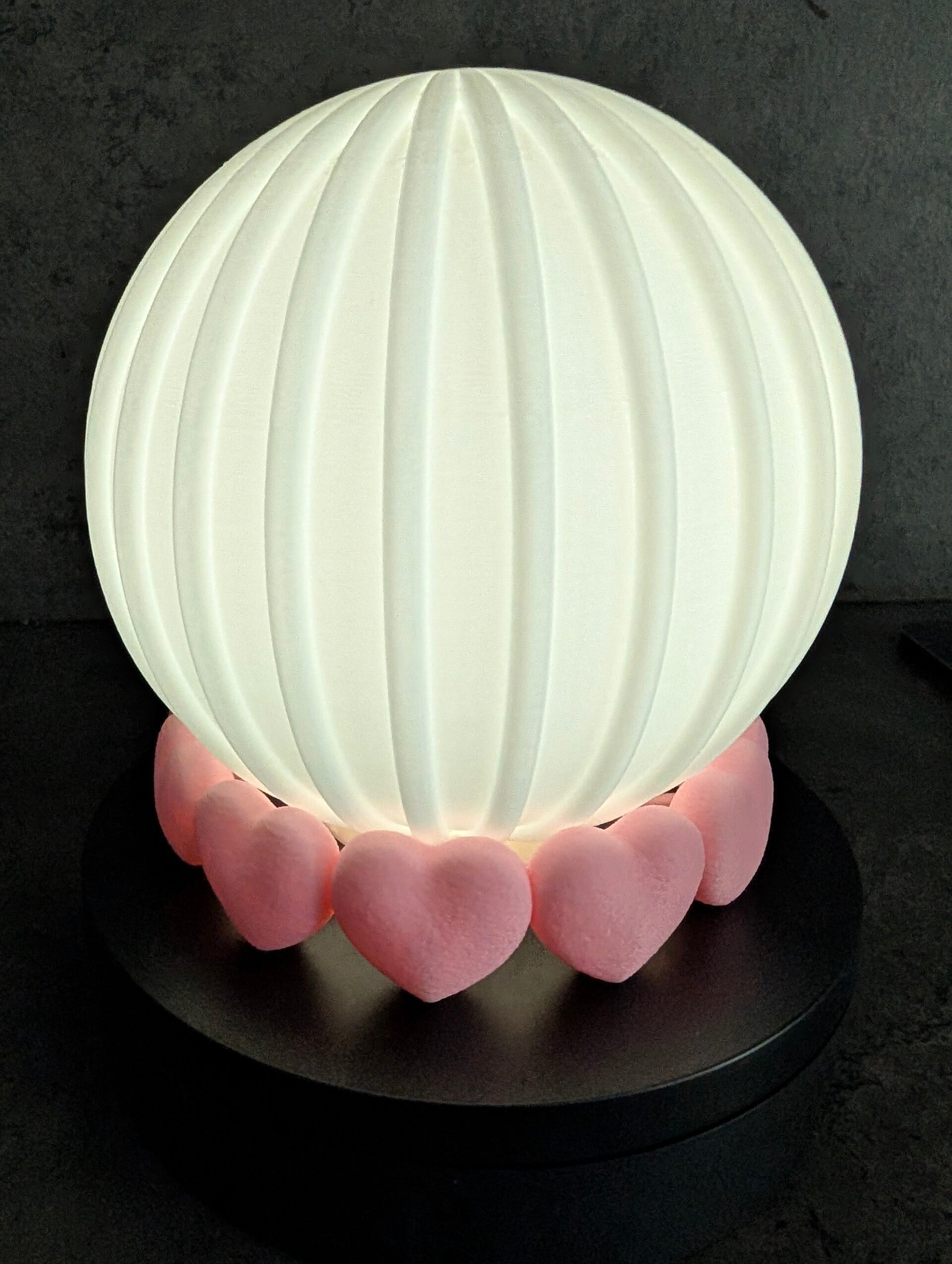 Süße Teelichtlampe mit noch süßerem Herzsockel, die Sockelfarbe kann selbstverständlich frei gewählt werden. Auf dem Produktbild wurde die Farbe "Sakura Rosa" gewählt.